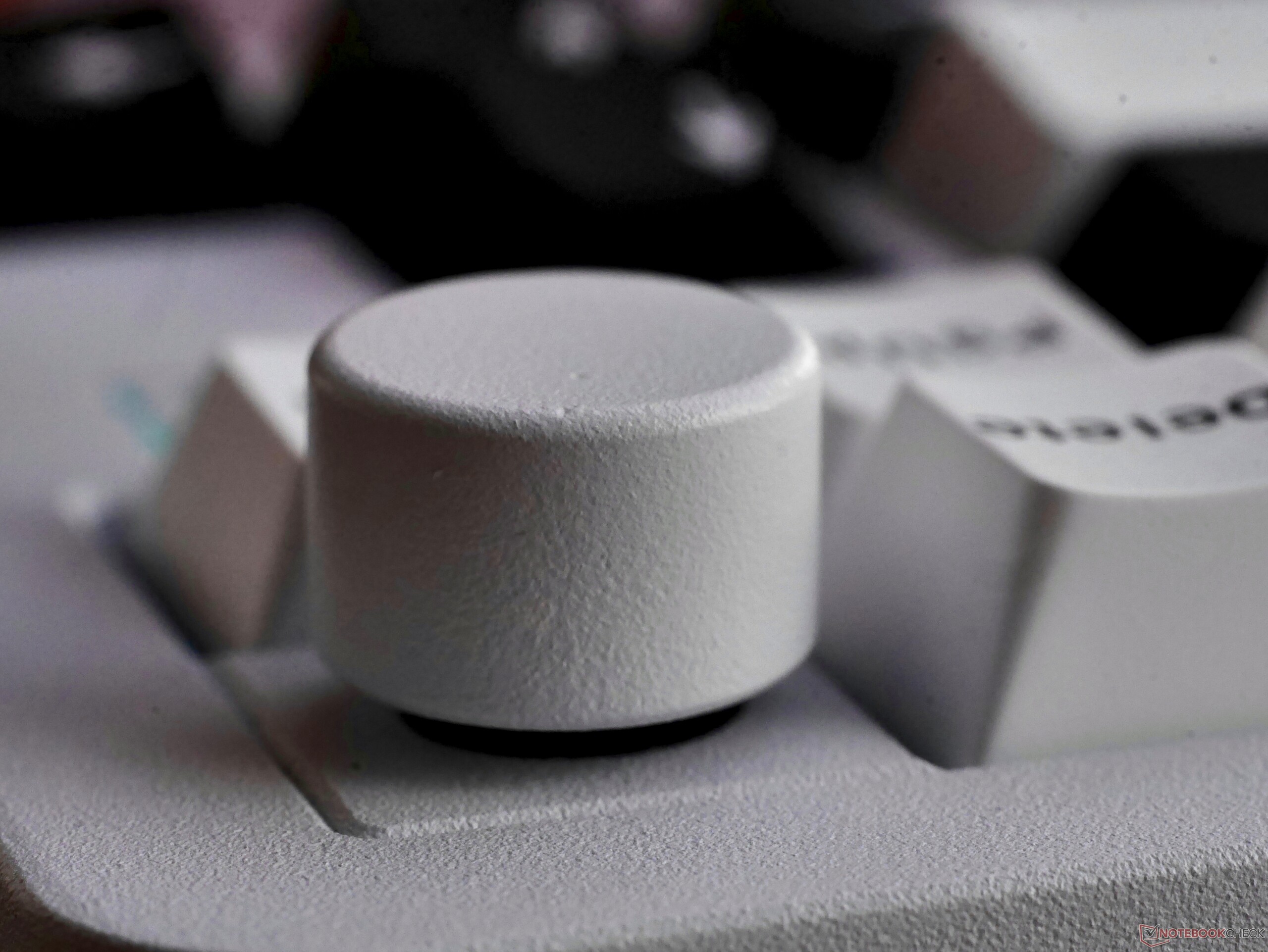La compatibilidad VIA es uno de los aspectos más destacados del Galaxy68, ya que permite a los usuarios remapear todo el teclado, incluido el mando programable, que viene configurado por defecto para controlar el volumen (con una pulsación para silenciarlo). Esto resultó especialmente útil para crear macros, que incluso pueden asignarse a las funciones del mando. El pomo tiene muescas positivas y se siente bien al usarlo, aunque se tambalea un poco de lado a lado, y el hueco entre la parte inferior del pomo y la carcasa es un poco grande.