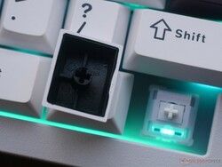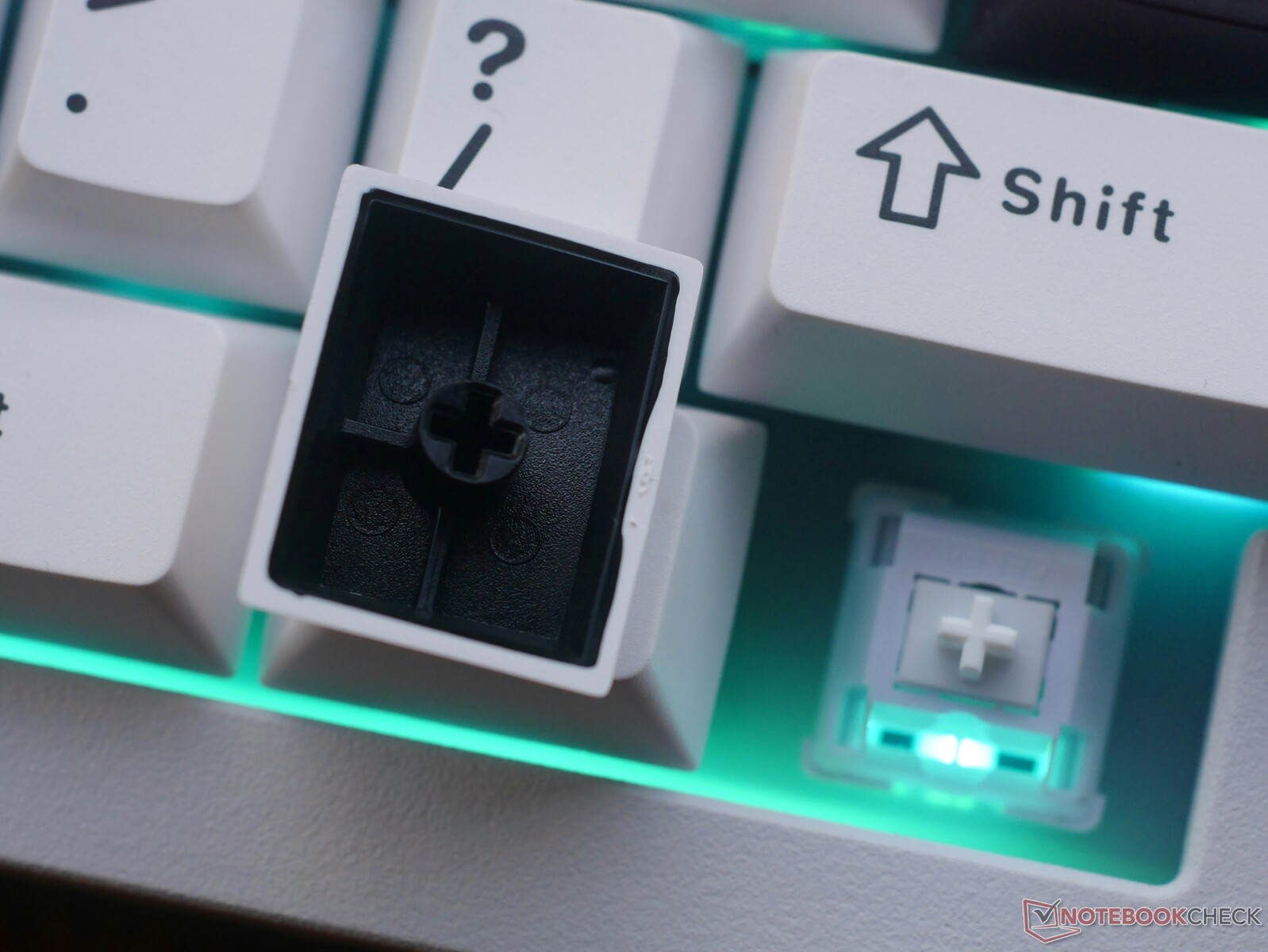 Dejando a un lado las críticas al diseño, el mayor problema que tuvimos con el Galaxy68 durante nuestra revisión fueron sus estabilizadores de la barra espaciadora. Mientras que la barra espaciadora tiene un perfil de sonido muy limpio, aunque algo hueco, fuera de la caja, tan pronto como quitamos la tapa de la tecla y la volvimos a poner, los estabilizadores de la barra espaciadora se volvieron muy traqueteantes. Esto es probablemente algo que puede resolverse fácilmente con algo de lubricación adicional, pero no deja de ser molesto.