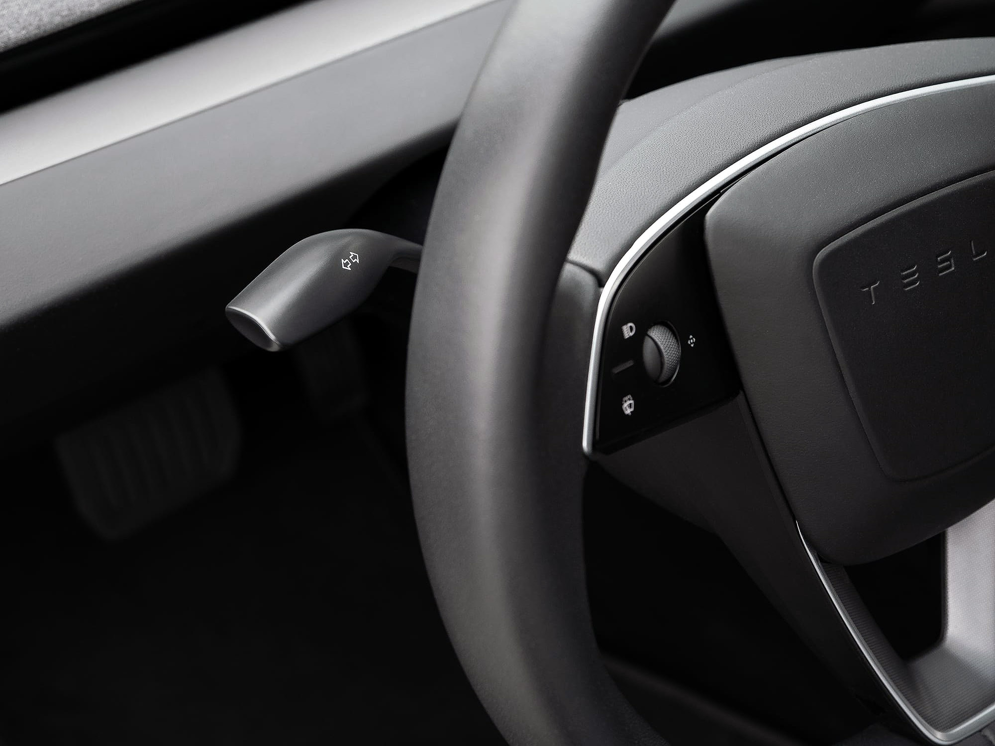 La palanca se sustituido por teclas de intermitentes en el volante en la renovación del Model 3 Highland, cuando Tesla trató de ahorrar unos dólares con lo que promocionó como un interior más minimalista. Sin embargo, a los clientes no les gustó la pérdida de memoria muscular que conllevaban los botones de los intermitentes, y la eliminación de la palanca se convirtió también en un atolladero normativo. En Europa, las autoescuelas rechazaron los Teslas como coches de aprendizaje, mientras que los reguladores advirtieron de que sus calificaciones de seguridad se resentirían en el futuro por la ausencia de la palanca de los intermitentes.