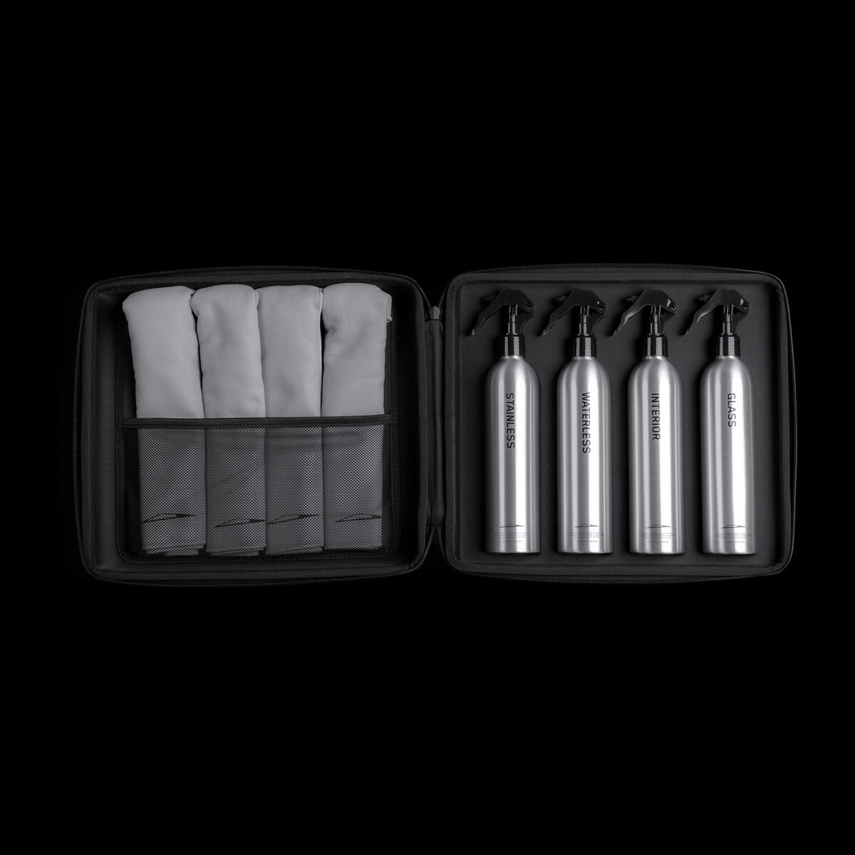 En lo que respecta a la limpieza del interior y los cristales, Tesla ofrece cuatro toallas de microfibra y una botella para limpiar"las superficies duras del interior, incluidos el salpicadero, los paneles de instrumentos, la consola central, los paneles de las puertas, el volante, el pomo del cambio y las molduras interiores"