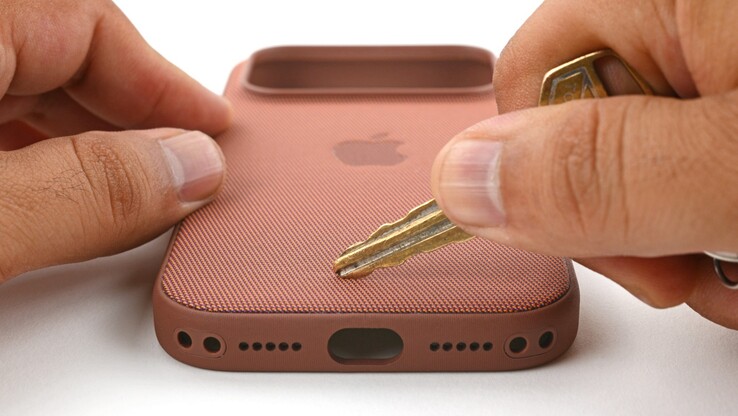 Los expertos en desmontaje de iFixit han probado ahora lo bien que este nuevo material resiste los líquidos, la suciedad y los arañazos. La impresión inicial es bastante positiva. No importa si es café, aceite de oliva o salsa picante, el alcohol elimina por completo todos los residuos. La funda también sobrevivió a una prueba inicial de arañazos con una llave sin daños visibles.