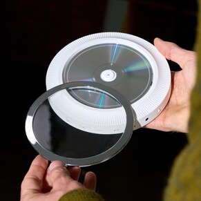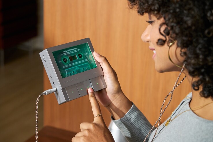 El reproductor de CD compacto también dispone de batería, el frontal redondo puede girarse hacia un lado para cambiar el CD. Una pequeña pantalla OLED muestra detalles sobre la reproducción y la batería. Al igual que el reproductor de casetes, el reproductor de CD se carga a través de USB-C, todos los componentes tienen una carcasa metálica de alta calidad y ofrecen Bluetooth y AUX