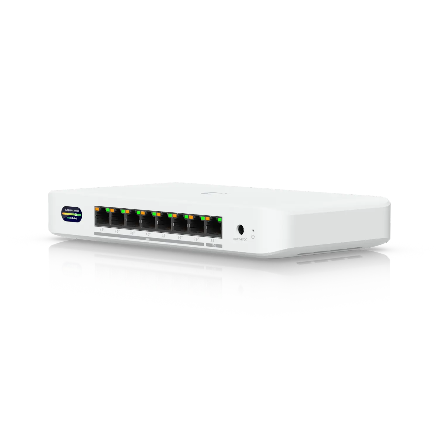 El conmutador en sí necesita 25 vatios de energía, pero también suministra 185 vatios a los dispositivos conectados alimentados. Éstos pueden conectarse a ocho puertos RJ45. También está disponible PoE+ (también conocido como IEEE 802.3at) con hasta 30 vatios. Cabe señalar que Ubiquiti sólo incluye una fuente de alimentación de 60 vatios con el conmutador, lo que reduce su presupuesto de energía a sólo 35 vatios. Los usuarios que necesiten más que eso deberán pedir la fuente de alimentación opcional de 210 vatios.