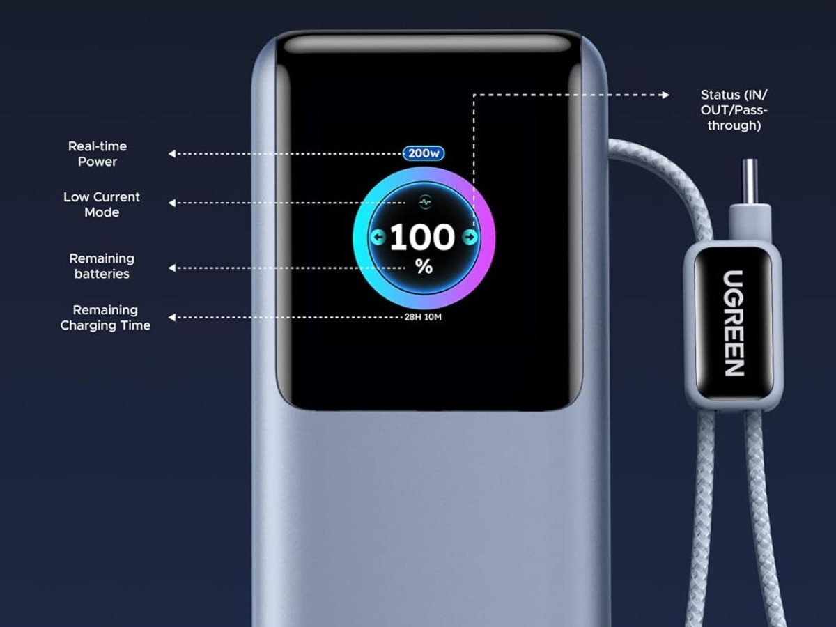 Ugreen lanza un nuevo banco de energía de 25.000 mAh con doble cable integrado y pantalla inteligente