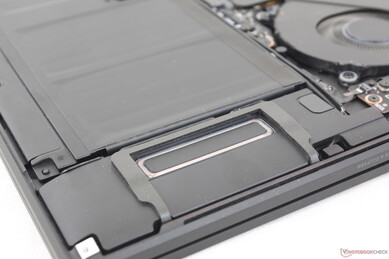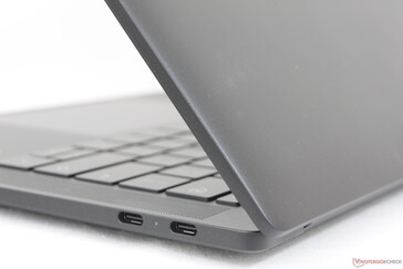 Las temperaturas superficiales son más cálidas en la mitad derecha del portátil que en la izquierda debido a la posición del procesador en el interior. Bajo altas cargas como juegos, los puntos más calientes en la parte trasera del chasis pueden ser de 10 a 14 C más calientes que los puntos más fríos en la parte delantera del chasis.