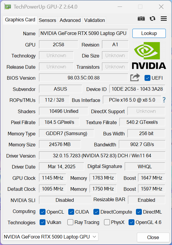 | Asus ROG Zephyrus G16 GU605CX Ultra 9 285H, GeForce RTX 5090 Laptop, Western Digital PC SN5000S SDEPNSJ-2T00-1006, OLED, 2560x1600, 16" | Razer Blade 16 2025 RTX 5090 Ryzen AI 9 HX 370, GeForce RTX 5090 Laptop, SSSTC CA6-8D2048, OLED, 2560x1600, 16" | Schenker XMG Neo 16 (Early 24) i9-14900HX, GeForce RTX 4090 Laptop GPU, Samsung 990 Pro 1 TB, IPS, 2560x1600, 16" | Alienware x16 R2 P120F Ultra 9 185H, GeForce RTX 4080 Laptop GPU, WDC PC SN810 1TB, IPS, 2560x1600, 16" | Asus ROG Zephyrus G16 GU605MY Ultra 9 185H, GeForce RTX 4090 Laptop GPU, Samsung PM9A1a MZVL22T0HDLB, OLED, 2560x1600, 16" | |