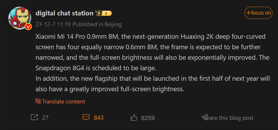 Informes anteriores del informante arrojaron luz sobre las pantallas con las que se espera que vengan los Xiaomi 15 y 15 Pro. El informante dijo que el modelo estándar mantendrá una pantalla plana y tendrá el mismo tamaño de pantalla que sus predecesores Xiaomi 14 y Xiaomi 13. En cuanto al 15 Pro, se dice que contará con una pantalla 2K ligeramente curvada con biseles estrechos de 0,6 mm.