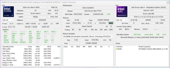 Rendimiento - Portátil Arrow Lake-H y RTX 5070 Ti