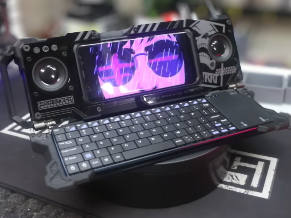 Sin embargo, no fue un proyecto rápido, ya que empezó desde cero, utilizando Fusion 360 para desarrollar el soporte del teléfono. Consiguió bisagras de un viejo ThinkPad y carcasas de altavoces para asegurarse de que todo encajara a la perfección sin comprometer la usabilidad.