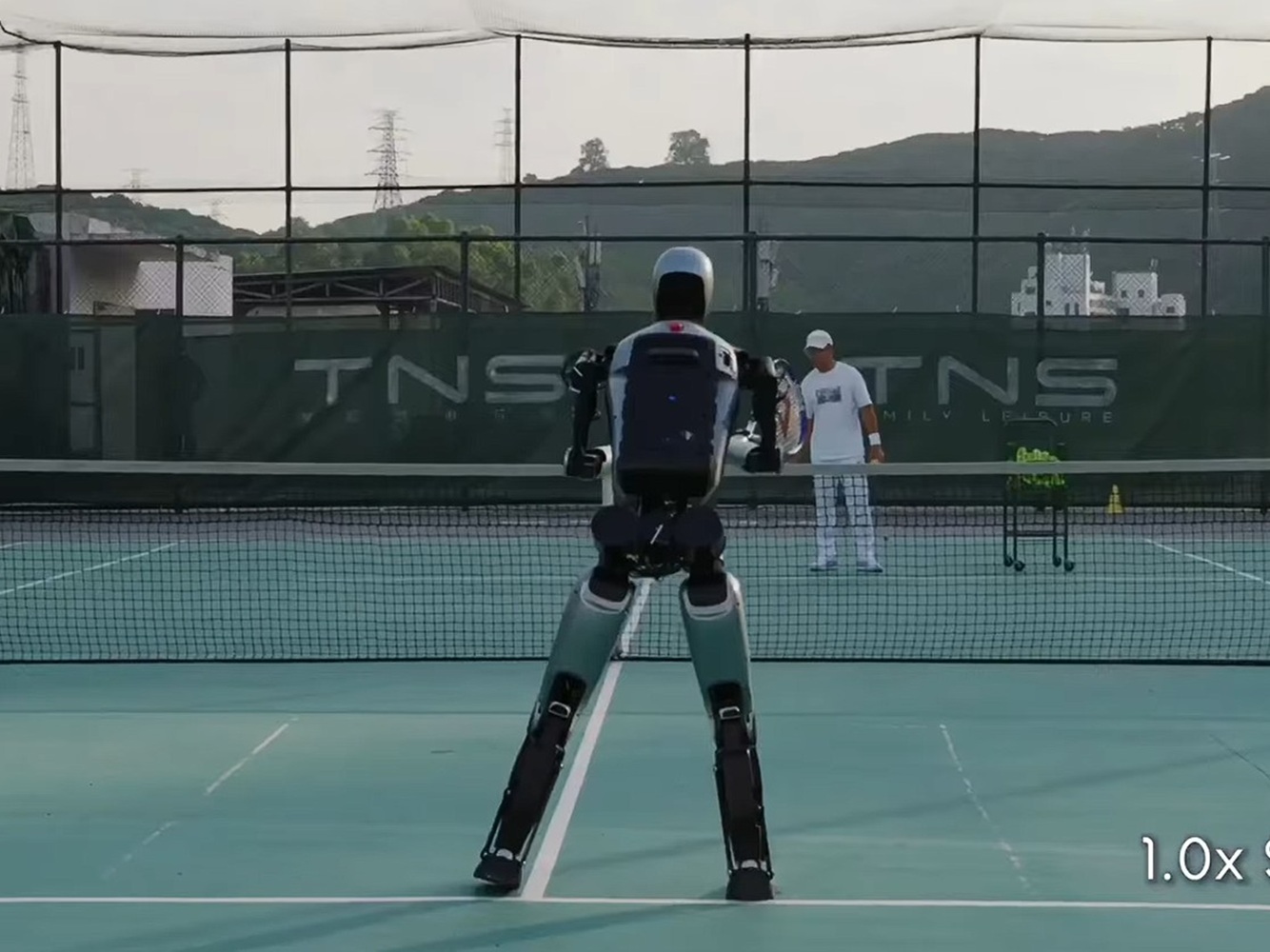 El humanoide es el Walker S2 de Ubtech Robotics. El vídeo muestra al robot sujetando una raqueta de tenis y parando golpes, que presumiblemente proceden del jugador humano que se encuentra en la otra mitad de la pista.