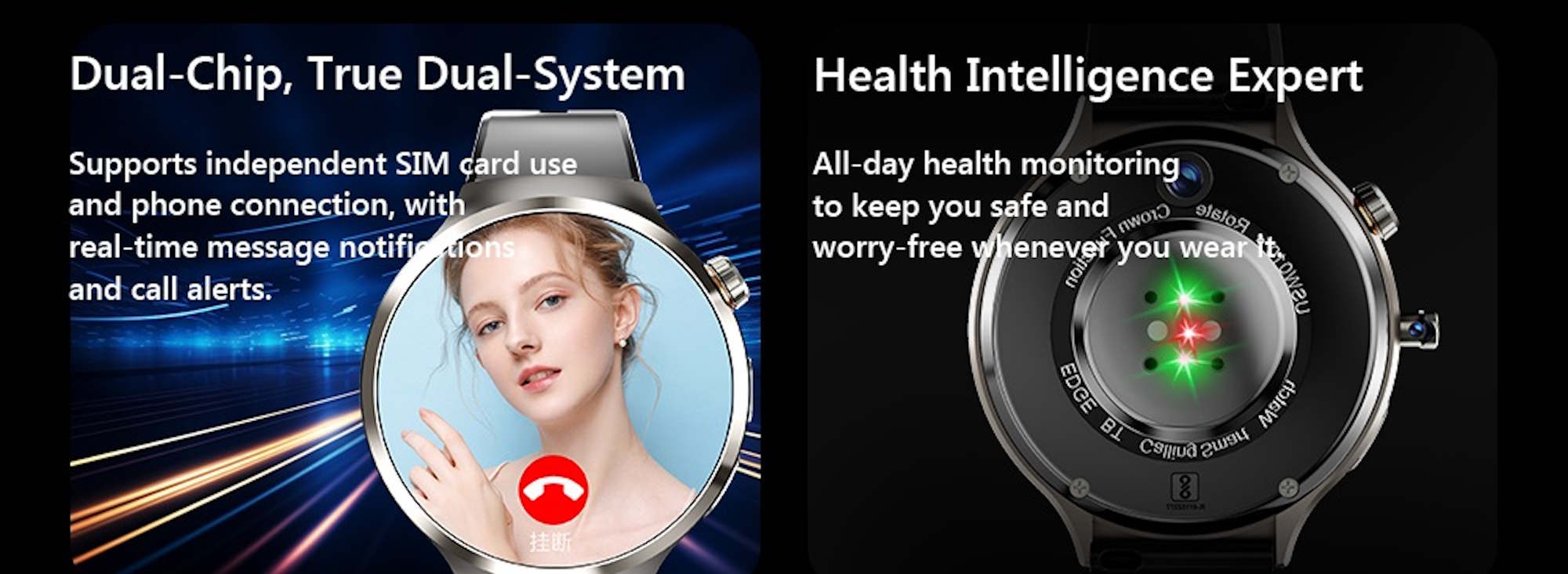 Además, el Rogbid R3 está equipado con una batería de 1.100 mAh, pero los posibles compradores no deben esperar una autonomía muy larga. El wearable también viene con 3 GB de RAM y 32 GB de almacenamiento. Hay un módulo GPS que podría utilizarse para la navegación, y una brújula electrónica también está a bordo. Lo mismo ocurre con los sensores de frecuencia cardiaca y oxígeno, y Rogbid anuncia incluso una función de presión sanguínea. Parece que no requiere calibración, por lo que estos valores de presión sanguínea podrían no ser muy precisos. En cualquier caso, el reloj también ofrece seguimiento del sueño y una cámara giratoria.