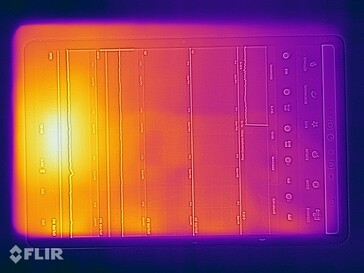 (-) La temperatura máxima en la parte superior es de 47.1 °C / 117 F, frente a la media de 33.7 °C / 93 F, que oscila entre 20.7 y 53.2 °C para la clase Tablet.