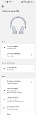 Los controles del hardware son intuitivos y fáciles de usar: La almohadilla derecha tiene un dial táctil para volumen/reproducir-pausar (girar/pasar). El auricular izquierdo alberga el botón de encendido y el control deslizante de refuerzo de graves. La extensión de la aplicación brilla con ecualizadores, curvas de sonido personalizadas y notificaciones de actualización. También hay un botón para activar el asistente de voz.
