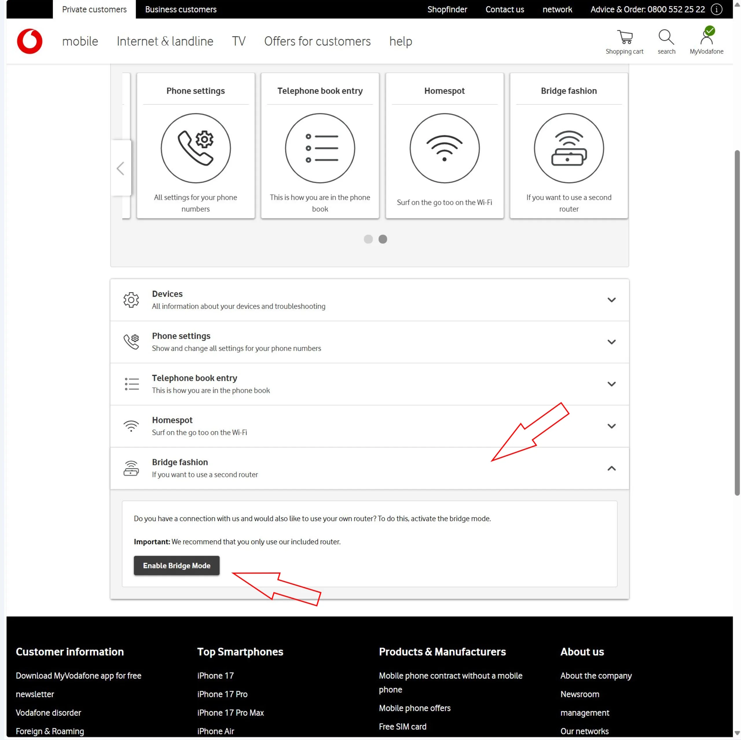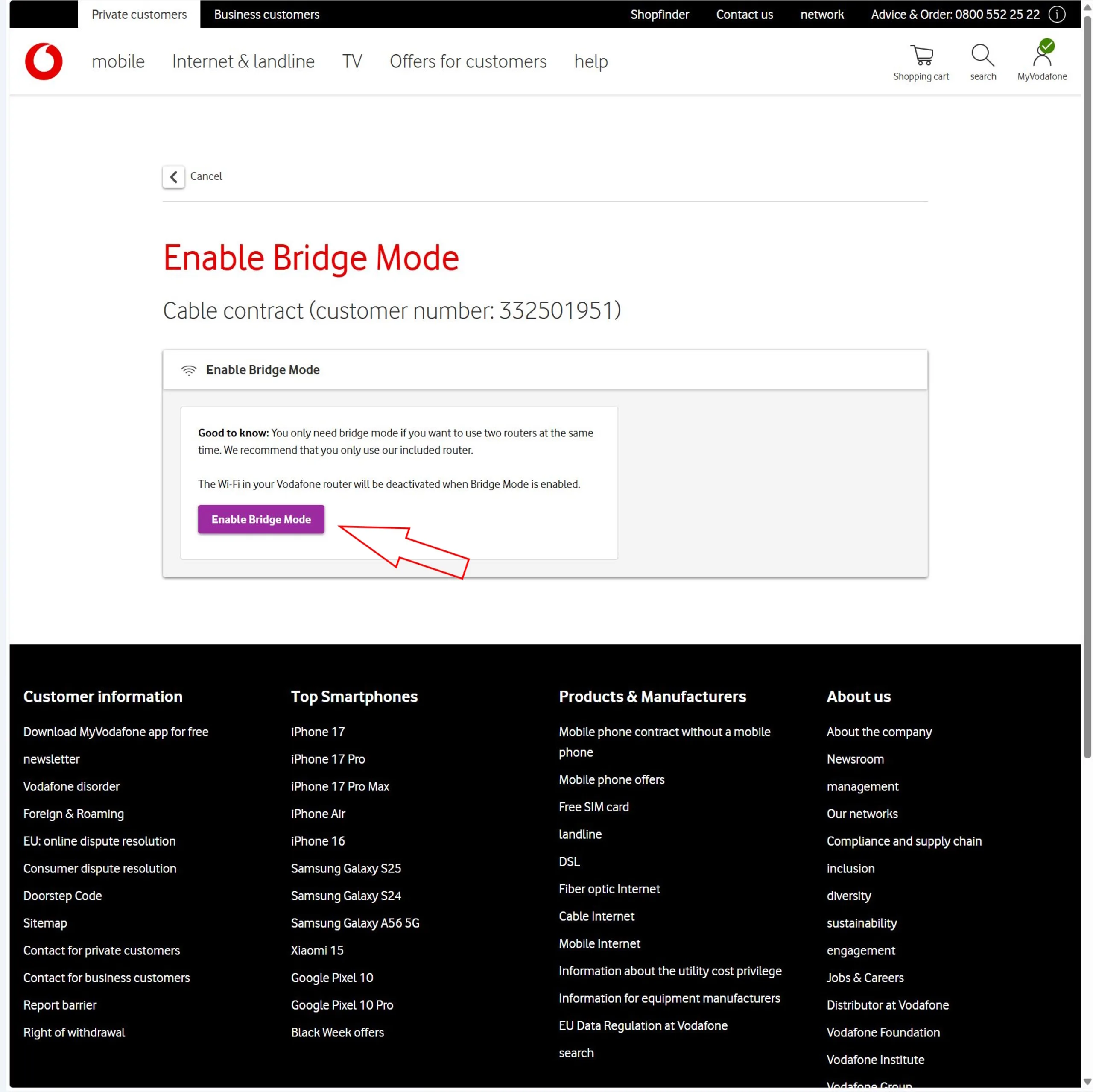 Activar el modo puente en su cuenta Vodafone