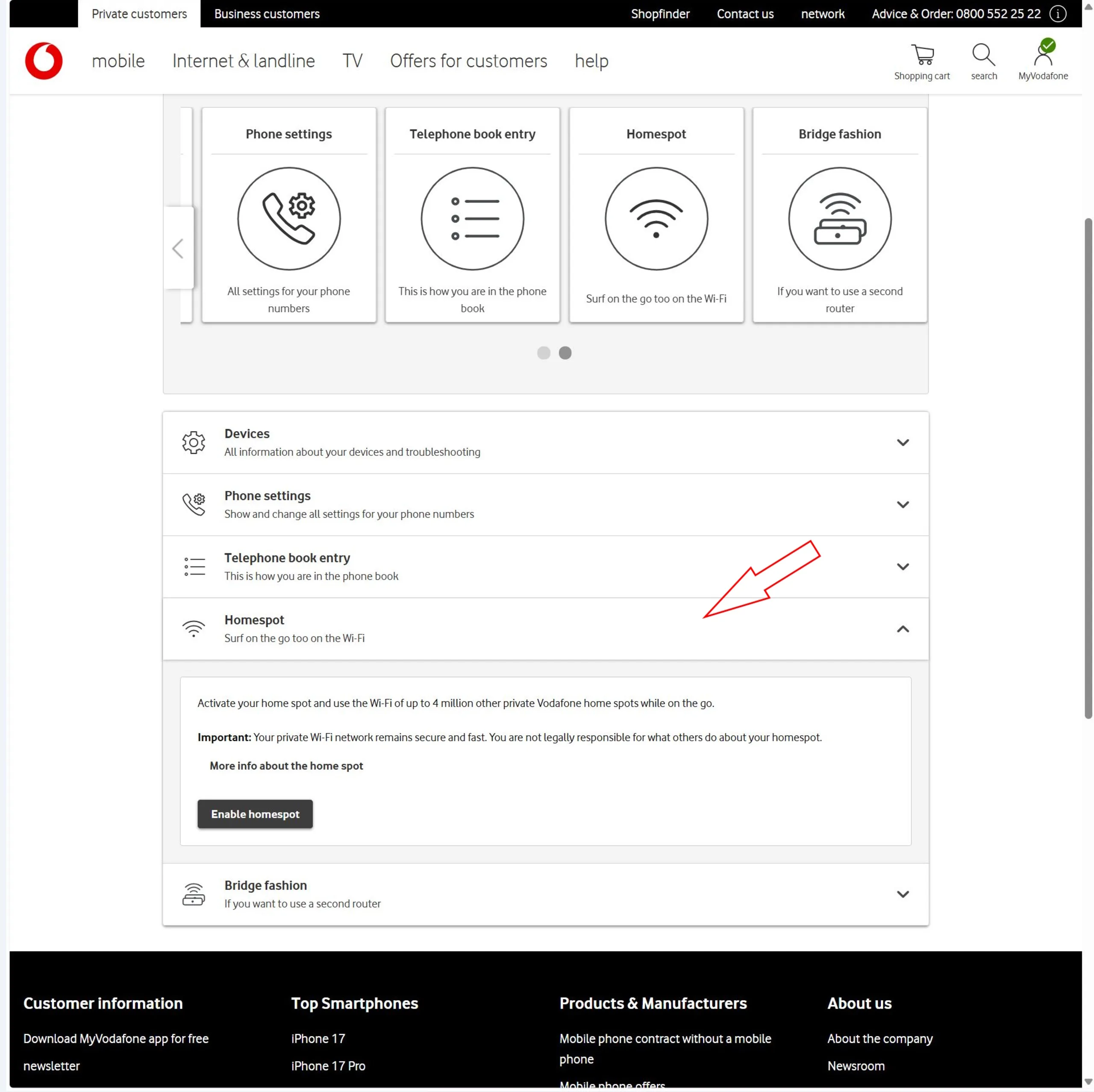 Para continuar, tendrá que desactivar la función Homespot. Tenga en cuenta que al hacerlo se elimina el acceso a la red hotspot de Vodafone. Personalmente, nunca he utilizado esta función.