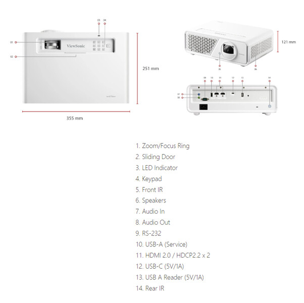 Un proyector DLP y LED, el ViewSonic X2 debería durar hasta 30.000 horas de uso normal antes de que su fuente de luz necesite ser reemplazada. Además, ViewSonic afirma que el proyector puede crear proyecciones de entre 60 y 120 pulgadas cuando se coloca a 1,5-3,0 metros de una pared o una superficie. Por cierto, el proyector ofrece una corrección trapezoidal vertical y horizontal de +/- 40º, además de un zoom óptico de 1,2x.