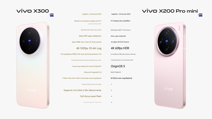 La propia Vivo confirma que el Vivo X300 no es un sucesor directo del Vivo X200 sino más bien del Vivo X200 Pro Mini, ya que una hoja de especificaciones oficial lo compara directamente con el anterior buque insignia de las compactas con cámara Zeiss. Esta lista compara algunas especificaciones importantes de la compacta Pro Mini con la nueva Vivo X300.