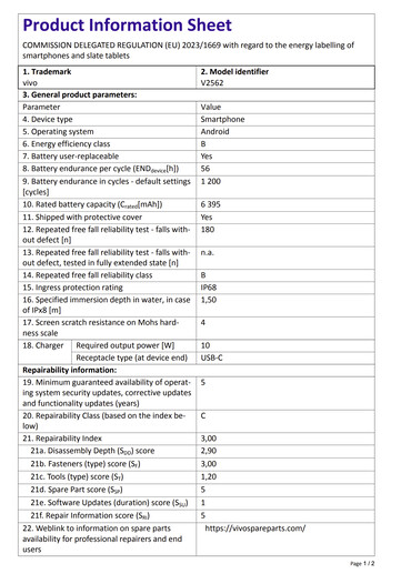 En su lugar, el nuevo buque insignia global de Vivo dura sólo un 3% más que el Galaxy S26 Ultra con 56:53 horas frente a 55 horas. Aún así, el Vivo X300 Ultra está clasificado para retener el 80% de la salud de su batería después de 1.200 ciclos, igualando a su homólogo de Samsung. Por cierto, EPREL confirma que el Vivo X300 Ultra también recibirá globalmente al menos cinco años de actualizaciones de seguridad Android.