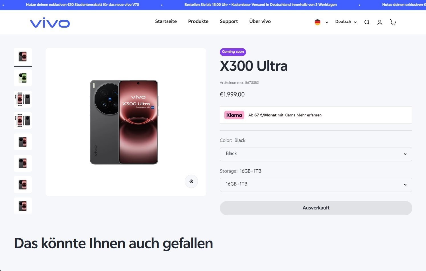 También hay disponible información más detallada, concretamente lo que parece ser el precio oficial en euros previsto para Austria y Alemania. La tienda oficial de Vivo para Austria, Alemania y Hungría, que lleva funcionando desde el lanzamiento del Vivo X300 Proparece haber listado ya el Vivo X300 Ultra, al menos según las capturas de pantalla que circulan por Internet. Cuando se comprobó, esos listados ya no estaban disponibles, por lo que la filtración no puede confirmarse directamente, aunque las capturas de pantalla parecen muy auténticas.