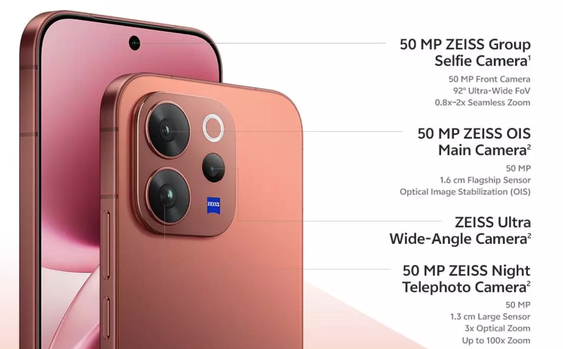 Además, Vivo complementa esta pantalla de 2.750 x 1.260 y 120 Hz con un nuevo lector ultrasónico de huellas dactilares y una cámara frontal de 50 MP. Además, la parte trasera del dispositivo está ocupada por un sensor principal Sony LYT 700V de 50 MP, un teleobjetivo de 50 MP respaldado por estabilización óptica de imagen (OIS) y una lente ultra gran angular de 8 MP.