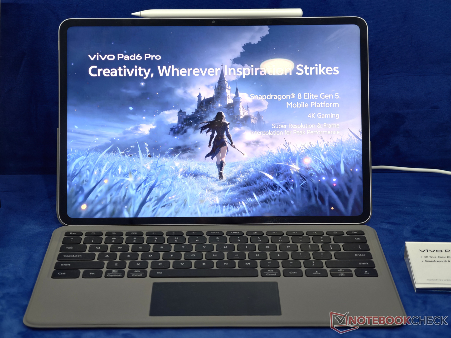 Además, la tableta estará disponible con al menos 12 GB de RAM y 256 GB de almacenamiento. Por el momento se desconocen las especificaciones completas de la pantalla. Vivo sólo se ha burlado de que la Pad6 Pro ofrece una resolución 4K, aunque Digital Chat Station indica que la tableta contiene un panel de 13,2 pulgadas. También se pudo ver una única cámara en la parte trasera, así como una cubierta de teclado folio y un lápiz óptico que se fija magnéticamente al borde superior de la tableta.
