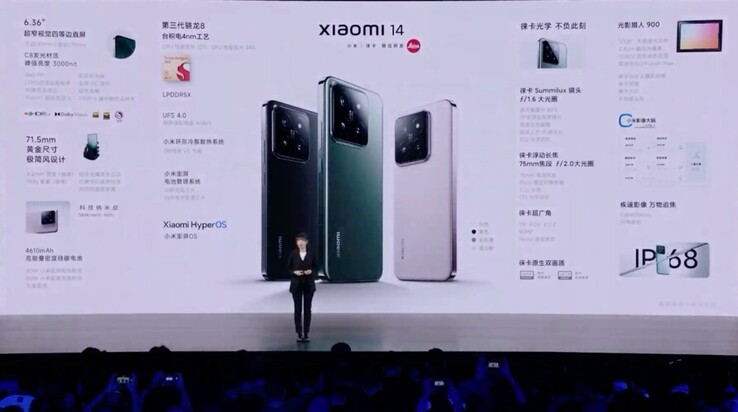 Por lo demás, el Xiaomi 14 tiene una batería de 4.610 mAh que admite carga por cable de 90 W, cuenta con la certificación IP68 contra el polvo y el agua y es el primer smartphone de Xiaomi que se lanza con HyperOS. El Xiaomi 14 comienza en 3.999 CNY (~ 547 dólares) con 8 GB de RAM y 256 GB de almacenamiento. Alternativamente, el teléfono está disponible con 12 GB o 16 GB de RAM y 512 GB o 1 TB de almacenamiento, alcanzando un precio máximo de 4.999 CNY (~US$684) con 16 GB de RAM y 1 TB de almacenamiento.