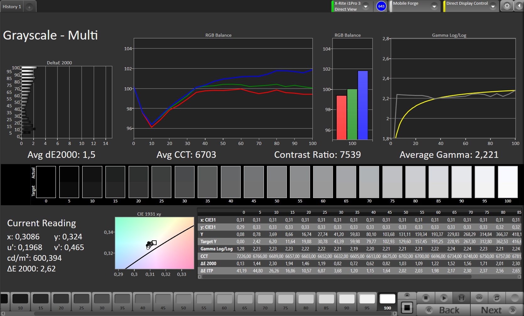 Aunque nuestras mediciones sobre un fondo blanco arrojaron un brillo máximo de sólo unos 1.000 cd/m², logramos unos excelentes 3.412 cd/m² utilizando el patrón de prueba APL18, más relevante. Esto se corresponde con el brillo máximo anunciado de 3.500 nits y es responsable de los excelentes efectos HDR.