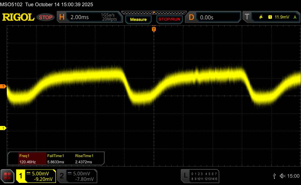 Como suele ocurrir con las pantallas OLED, el brillo de la pantalla se controla mediante modulación PWM. Esto produce un parpadeo de la pantalla y, según el fabricante, incluye protección para los ojos (frecuencia: 2.160 Hz). Nuestras mediciones de la pantalla revelaron un parpadeo base de aproximadamente 120 Hz.