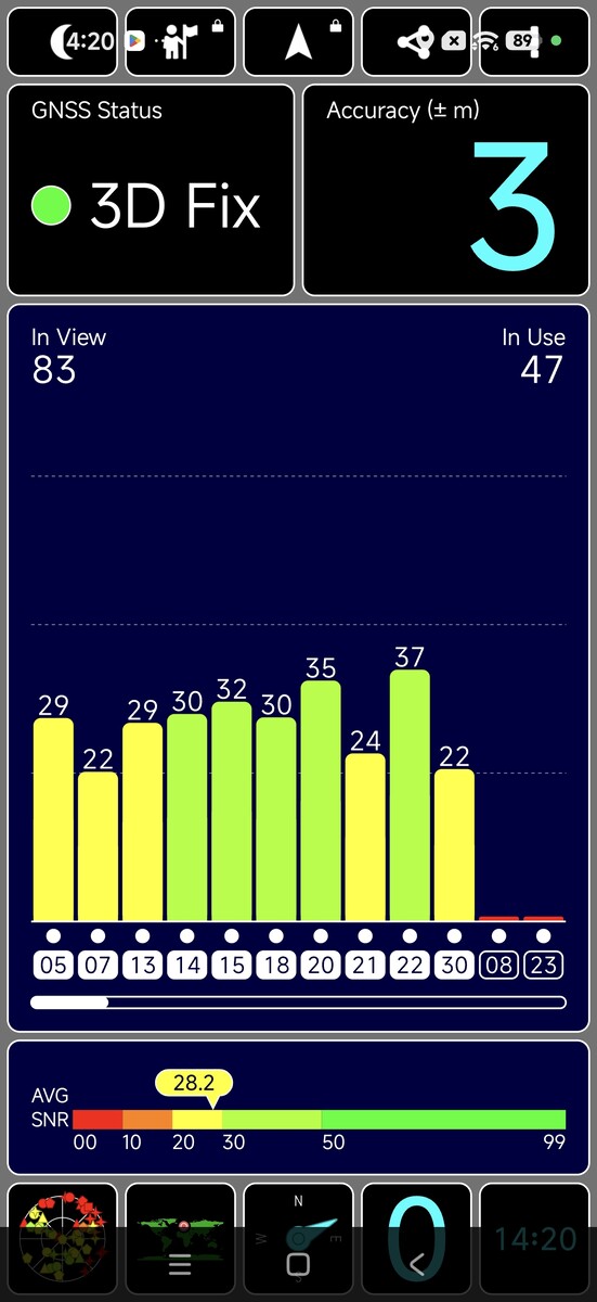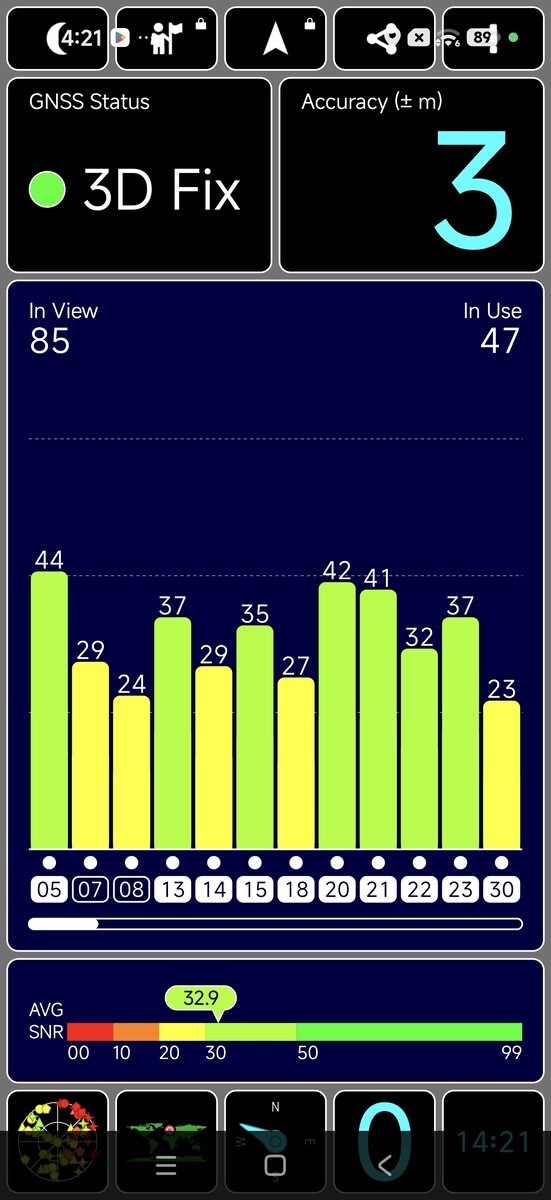 En exteriores, el Xiaomi 17 Pro adquirió rápidamente una señal de satélite y señaló su ubicación con una precisión de 3 metros. Utiliza las principales redes mundiales de satélites en modo de doble banda para el posicionamiento.