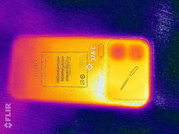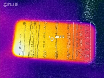 (-) La temperatura máxima en la parte superior es de 48.7 °C / 120 F, frente a la media de 35.2 °C / 95 F, que oscila entre 21.9 y 247 °C para la clase Smartphone.