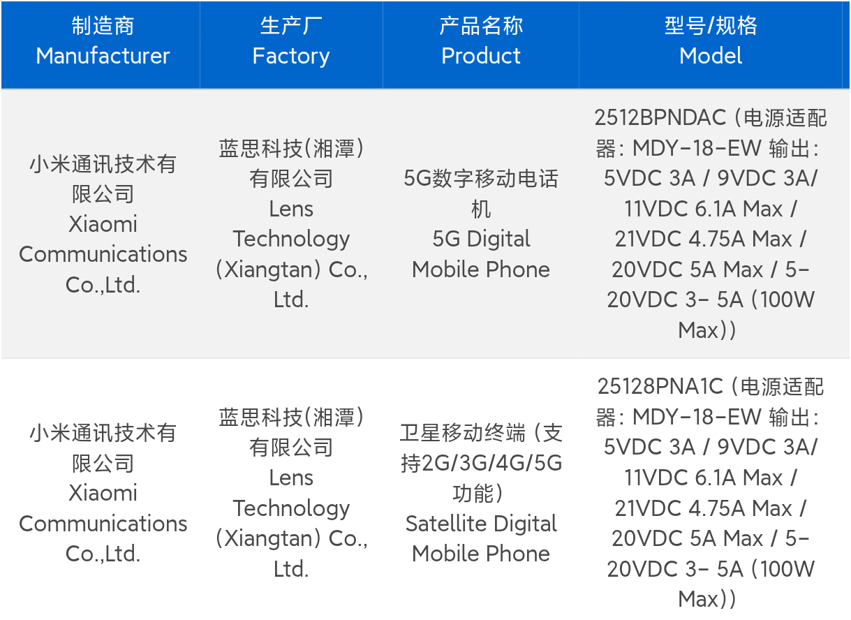 El sucesor del Xiaomi 15 Ultra ha sido visto en el sistema de certificación 3C de China, con dos modelos distintos listados. Las entradas del CCC confirman que ambas variantes soportan carga rápida de 100 vatios - similar al Xiaomi 17, Xiaomi 17 Pro y Xiaomi 17 Pro Max. Según la certificación, los modelos 2512BPNDAC y 25128PNA1C sólo difieren en su conectividad celular: El primero admite exclusivamente redes 5G, mientras que el segundo añade conectividad por satélite (al menos en China). El prolífico filtrador Digital Chat Station afirma que esta variante admite SMS por satélite Beidou y llamadas por satélite Tiantong