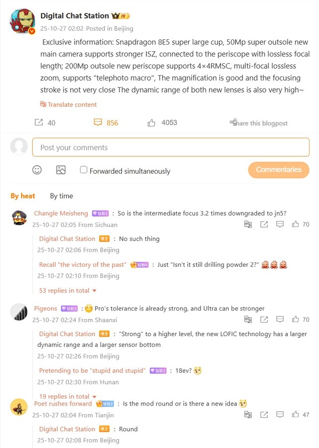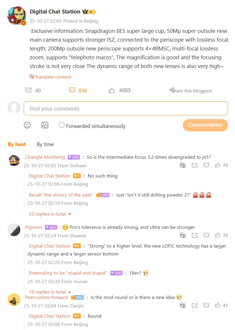 De esto también se hace eco https://weibo.com/6048569942/QbkCvobay por Digital Chat Station. Esta vez, califica la característica de "zoom físico exclusivo" que, según dice, está muy por delante de la competencia. También se mencionan otras dos características de la cámara que Oppo y Vivo ya tienen en el Oppo Find X9 Pro y el Vivo X300 Pro: Por primera vez, es probable que Xiaomi instale un sensor de color independiente en forma de sensor multiespectral. Por otro lado, la función de flash con zoom conocida del Vivo X300 Pro y el Vivo X200 Ultra es probable que esté a bordo, que puede ajustar la intensidad y la temperatura de color a la distancia focal seleccionada