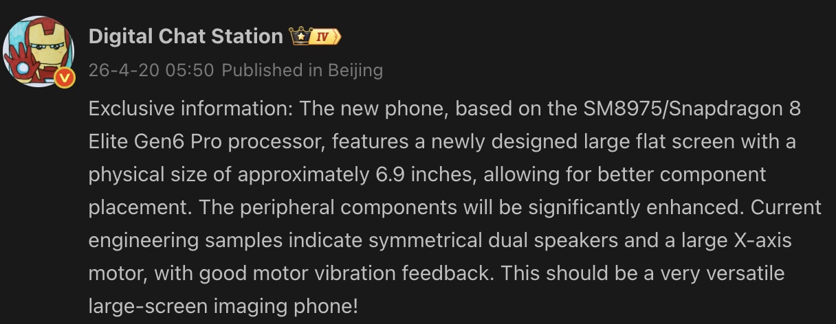 Como referencia, se espera que Qualcomm lance dos chipsets en su serie de buques insignia de próxima generación: el Snapdragon 8 Elite Gen 6 estándar y el 8 Elite Gen 6 Pro. Se espera que este último sea un procesador octa-core basado en el proceso de 2nm de TSMC. Es posible que incorpore una GPU A850 y admita memoria LPDDR6.