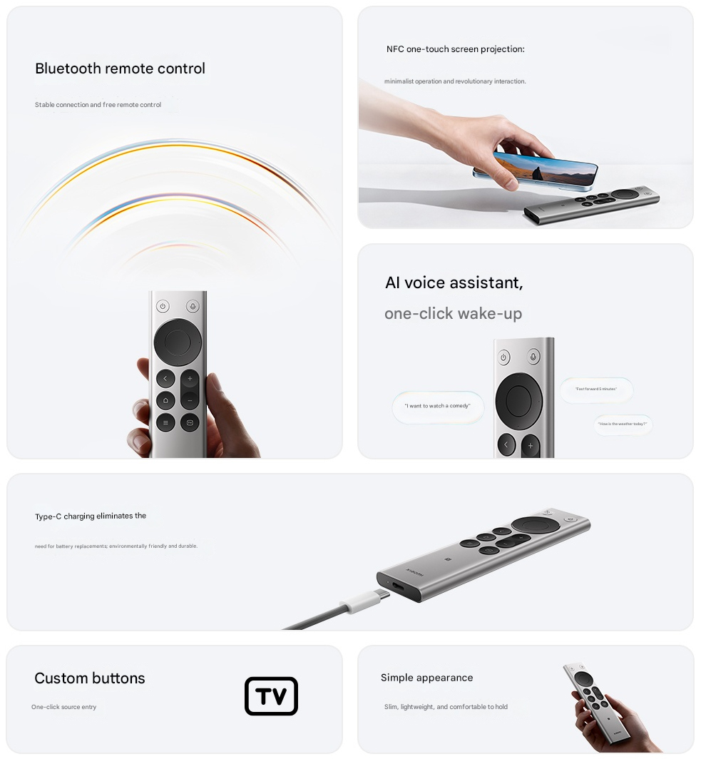 Una batería de 300 mAh alimenta el Xiaomi Bluetooth Remote 2 Pro, y se carga a través de Type-C. En cuanto a la compatibilidad, la compañía señala que es ampliamente compatible con Redmi y Xiaomi TV y TV boxes, y con Bluetooth 5.4, la marca promete una conectividad estable.