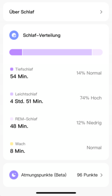 Caminar, correr, montar en bicicleta y el entrenamiento con la máquina de remo o en la bicicleta elíptica son detectados automáticamente por la banda deportiva y luego vibran para recordar al usuario que debe comenzar a grabar si es necesario. Hay que activar primero el reconocimiento, también por razones de energía, y para cada deporte individualmente. Si el usuario lleva el smartphone consigo, la Band 6 también graba la ruta a posteriori (al caminar, correr y montar en bicicleta). Elrecordatorio durante el ciclismo se produjo después de unos 10 minutos en la prueba. Durante un recorrido por los alrededores con varias paradas, la grabación se detenía automáticamente al parar. Sin embargo, el segundo valor de la ganancia de altitud, que definitivamente no representa una altitud absoluta en las montañas de Hesse, no está claro en el siguiente registro.