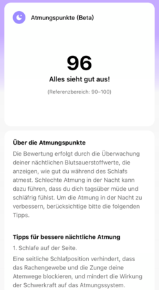 Para la prueba, medimos la saturación simultáneamente en cada caso con un pulsioxímetro con certificación médica. En la serie de mediciones, la Banda 6 estima sistemáticamente la saturación demasiado alta. Las desviaciones son de entre 1 y 4 puntos porcentuales.