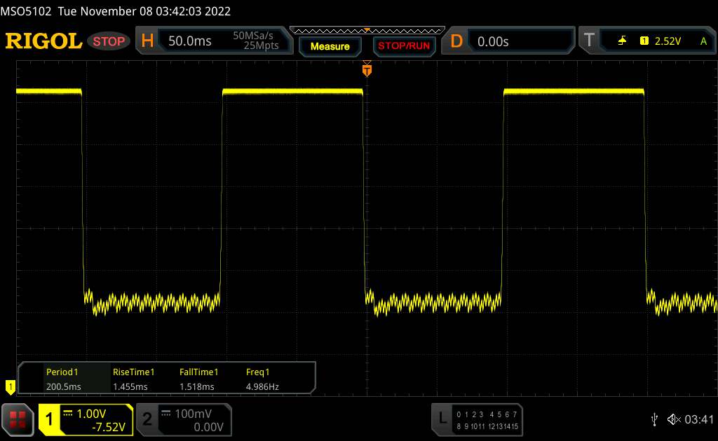 El control PWM funciona igual en ambos paneles. Con el brillo de pantalla al mínimo, registramos un ciclo periódico muy inestable de entre 242 y 491 Hz. Sin embargo, si el smartphone nota que está oscuro, cambia automáticamente a un modo de atenuación DC. Posteriormente, sólo se puede medir una frecuencia constante de 120 Hz. No se utiliza dithering temporal