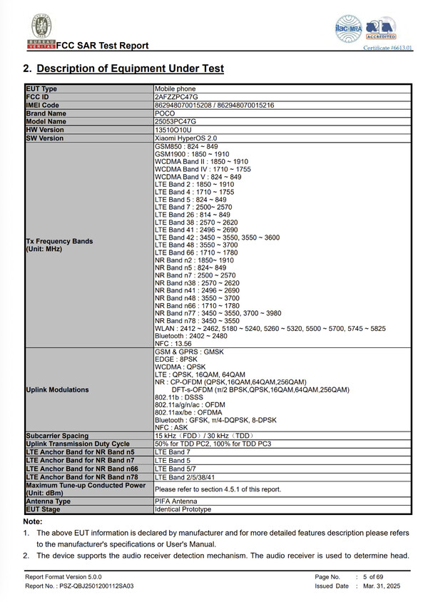 Esta vez, la Comisión Federal de Comunicaciones (FCC) ha publicado la documentación para '25053PC47G', que las bases de datos de IMEI han asociado al nombre del modelo Poco F7. Como es habitual, la FCC no revela demasiados detalles sobre el dispositivo. Sin embargo, hemos conseguido entresacar algunos detalles de la documentación que el organismo regulador ha publicado hasta ahora.