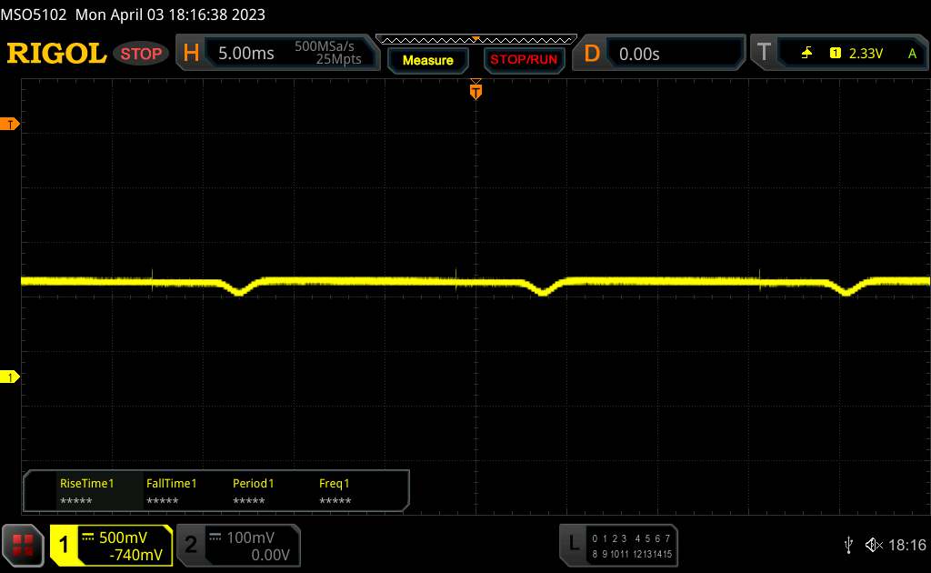 Debido al panel OLED, se usa la tecnología PWM junto con su parpadeo para controlar el brillo de la pantalla. Medimos 120 Hz constantes con una amplitud uniforme. Sin embargo, el fabricante habla de una frecuencia PWM muy alta de 1920 Hz, que sería mucho más cómoda particularmente para los usuarios más sensibles. Al final, no somos capaces de determinar si la diferencia aquí se debe a nuestro equipo de medición o tal modo que sería similar a la atenuación automática de CC simplemente no estaba activo.