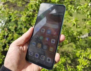 Visualmente, el Redmi Note 12 apenas difiere de la serie Pro, pero los bordes alrededor de la pantalla son un poco más anchos en el modelo básico. Como resultado, la relación pantalla-borde es inferior a la delNote 12 Procon un 85%. Los bordes de la pantalla podrían haber sido un poco más estrechos para nuestro gusto, pero siguen siendo aceptables para el rango de precios. No se sabe nada del cristal protector incorporado en la parte frontal, lo que dificulta una valoración de su resistencia a daños.