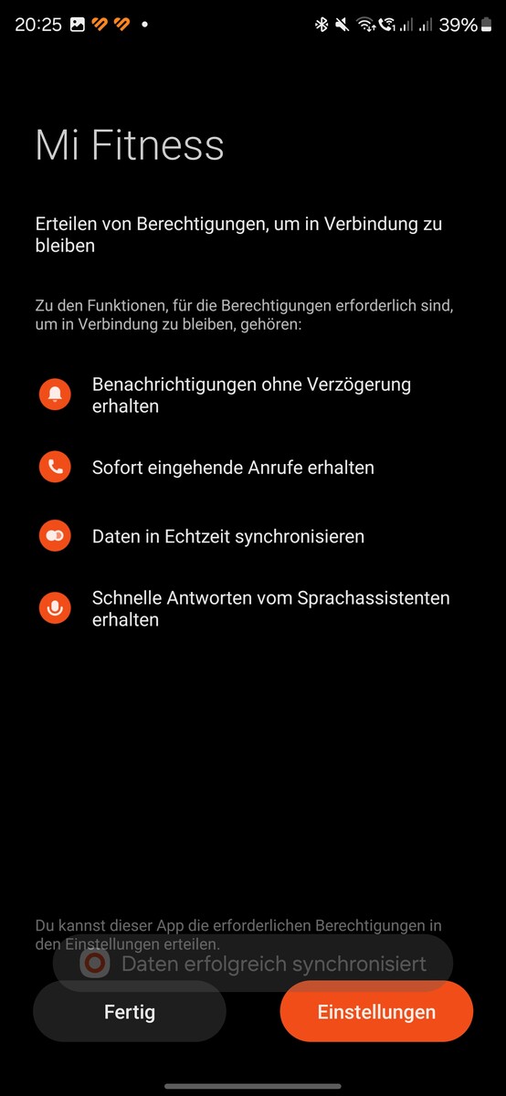 Tras iniciar la aplicación, ésta busca automáticamente los dispositivos -la Smart Band 9 se encontró rápidamente durante nuestra prueba-. A continuación, hay que asignar las autorizaciones, por ejemplo para el envío de notificaciones.