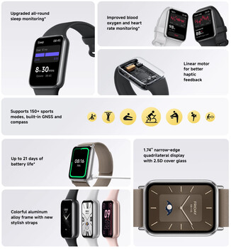 La duración de su batería también ha experimentado una mejora con respecto a su predecesora, ya que Xiaomi promete hasta 21 días de uso en el "modo de uso típico" y hasta 10 días en el "modo AOD" Otras características destacables de la Smart Band 9 Pro son el control de la música, un nuevo motor lineal para mejorar las vibraciones y un diseño elegante.
