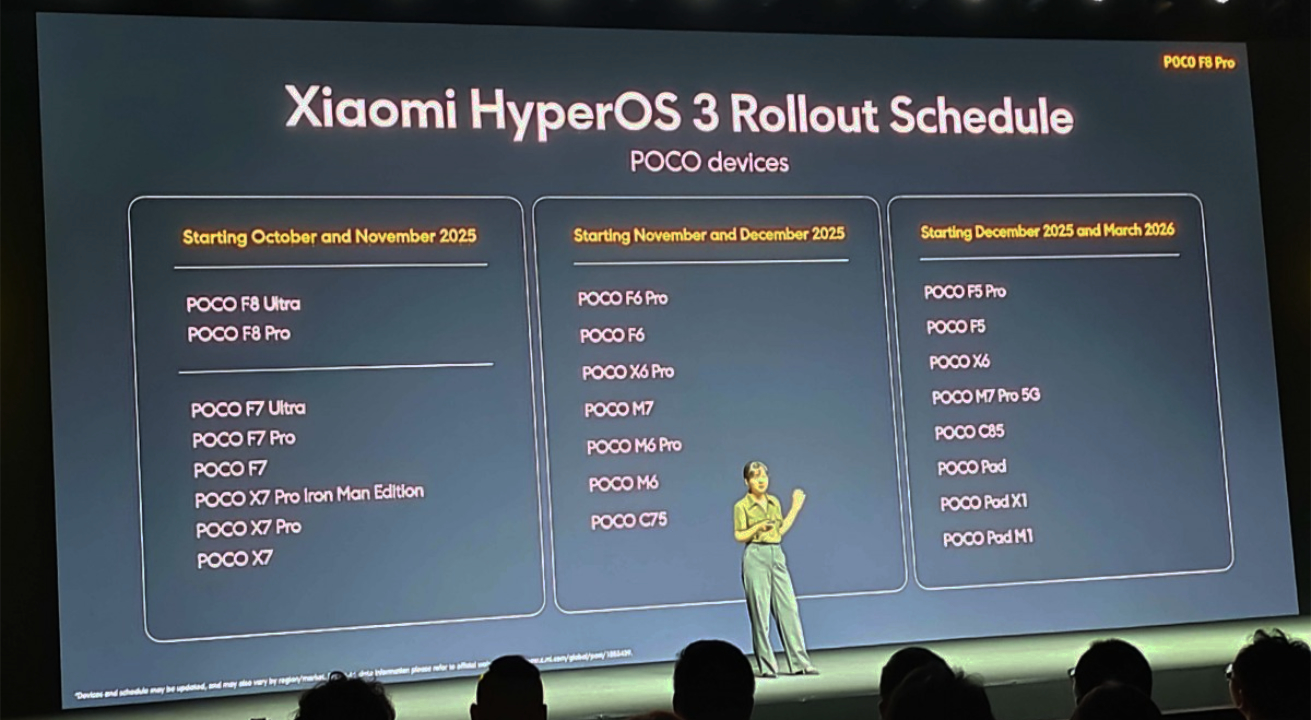 A principios de esta semana, Xiaomi lanzó globalmente cuatro nuevos dispositivos de la marca Poco en sus divisiones de teléfonos inteligentes y tabletas. En el lanzamiento, la compañía fue bastante vaga sobre el software que incorporaría la Pad M1 o la Pad X1 ejecutaban al sacarlos de la caja. Por el contrario, había indicado que el Poco F8 Pro y Poco F8 Ultra se enviarían con HyperOS 3, lo que un nuevo Calendario de Despliegue oficial contradice un poco.