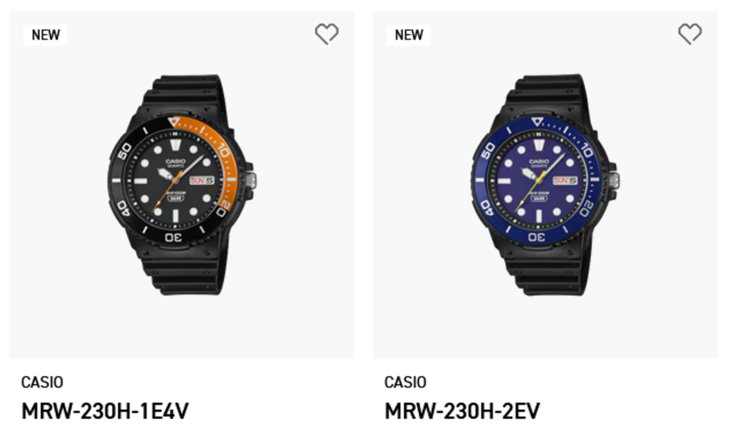 Casio ha listado oficialmente dos relojes más en su página web internacional - el MRW-230H-1E4V y MRW-230H-2EV. Esto confirma anteriores avistamientos de minoristas. Estos modelos ya habían aparecido ya en listados de minoristas internacionales a través de Bellopor lo que ésta es su primera presencia oficial en la plataforma global de Casio.
