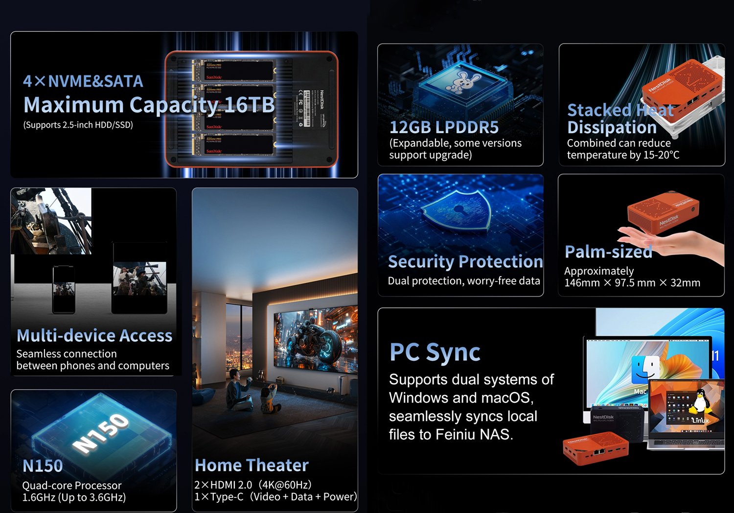 Youyeetoo ha presentado el NestDisk, que se presenta como un sistema versátil que puede utilizarse como un mini PC normal o como un NAS. Este sistema del tamaño de la palma de la mano tiene cuatro ranuras PCIe SSD y admite unidades de 2,5 pulgadas y, según la empresa, puede equiparse con hasta 16 TB de almacenamiento.
