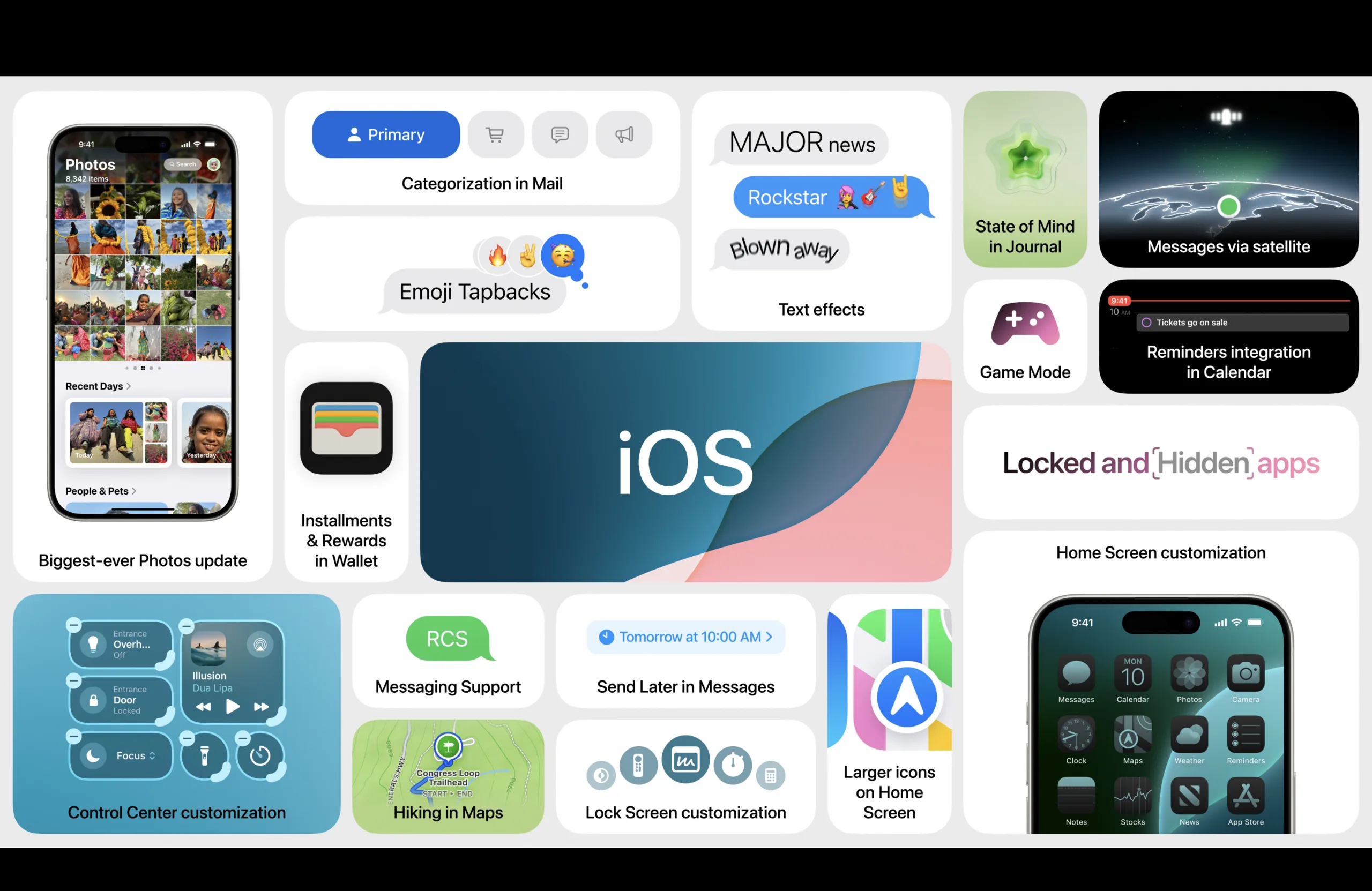 Otras características de iOS 18 incluyen la incorporación del "Modo Juego" a su iPhone. Como su nombre indica, libera recursos de fondo, lo que permite que su juego se ejecute con mayor fluidez. La actualización también trae una de las características más esperadas: La compatibilidad con RCS para Mensajes. Otras aplicaciones, como Fotos, Mapas y Cartera, también reciben un montón de mejoras de calidad de vida. Mensajes recibe un montón de nuevas opciones de formato, Fotos recibe lo que Apple denomina su "mayor actualización hasta la fecha" y Cartera le permite pagar a su amigo con un solo toque, de forma similar a como iOS 17 le permitía intercambiar contactos.