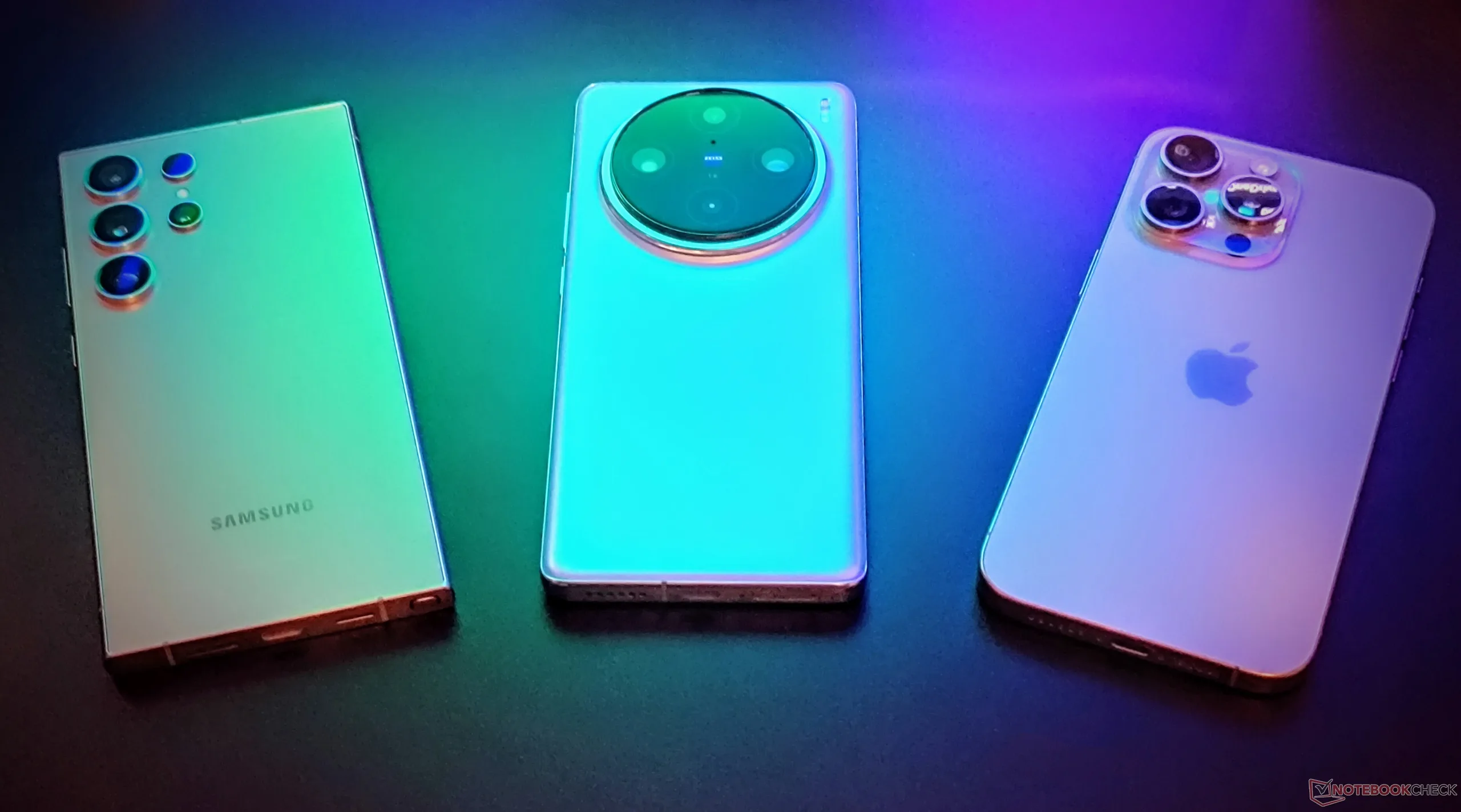 El iPhone 15 Pro Max ejecuta el Apple A17 Pro con un hexa-core que alcanza los 3,77 GHz y cuenta con una arquitectura de GPU de 6 núcleos totalmente nueva. El Galaxy S24 Ultra ejecuta el Qualcomm Snapdragon 8 Gen 3 (SD8G3) con una configuración clásica big.LITTLE octa-core con una frecuencia de reloj de hasta 3,4 GHz y una GPU Adreno 750 con una frecuencia de reloj de hasta 1 GHz. El Vivo X100 Pro ejecuta el MediaTek Dimensity 9300 (D9300) de MediaTek con un arco octa-core "todo grande" poco convencional con una frecuencia de reloj de hasta 3,25 GHz con 4 núcleos grandes y 4 núcleos medios. Su Mali G720-Immortalis luce una configuración de 12 núcleos.