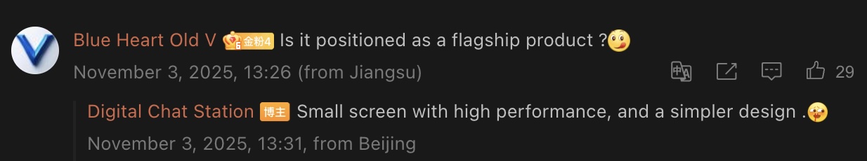 Más allá del rendimiento, lo más destacado del iQoo 15 Mini será su más pequeño factor de forma. Se dice que contará con una pantalla de 6,31 pulgadas con una resolución de 1,5K. El resto de las especificaciones siguen siendo un misterio. En uno de los comentarios, el informante también sugiere que podría tener un diseño "más sencillo", aunque no se proporcionaron más detalles.